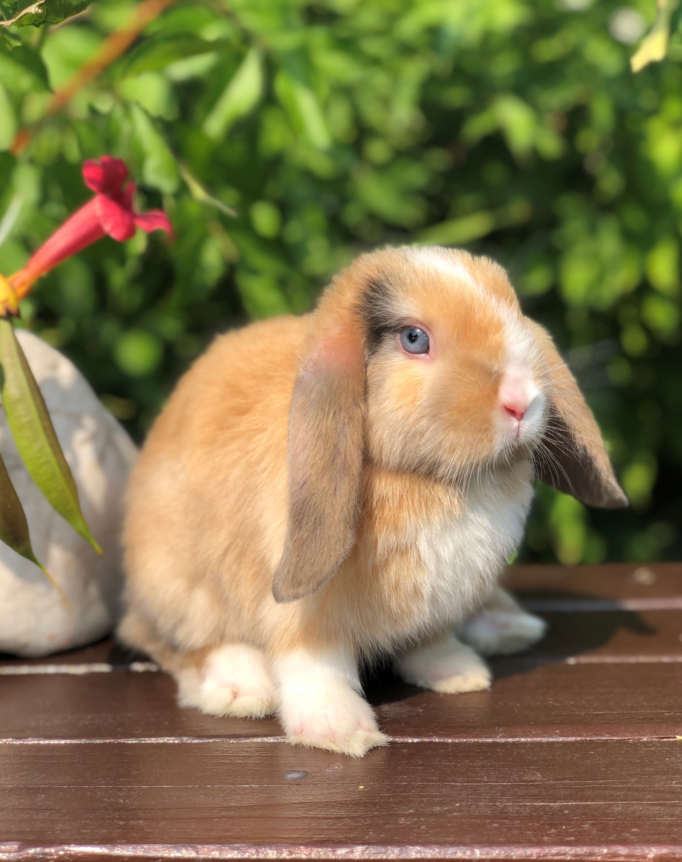 Později jsem převzala péči o naše králíky žijící ve venkovní králíkárně. No div, ale i králíček slyšel na jméno… Začala jsem se více zajímat o tahle zvířátka. Brouzdala jsem po internetu a hledala nejrůznější informace o králíčcích. Jednou jsem narazila na velmi poutavou fotografii, kterou nebylo možné přehlédnout – byl na ní překrásný králíček…, ale jiný, než jsem byla zvyklá ‒ měl dlouhá ouška visící dolů, modré oči, zářící jako pomněnky, bílé tlapičky… a byl celý oblečený v saténu… saténový zakrslý beránek… Právě hledal nový domov… Úplně mne okouzlil!
